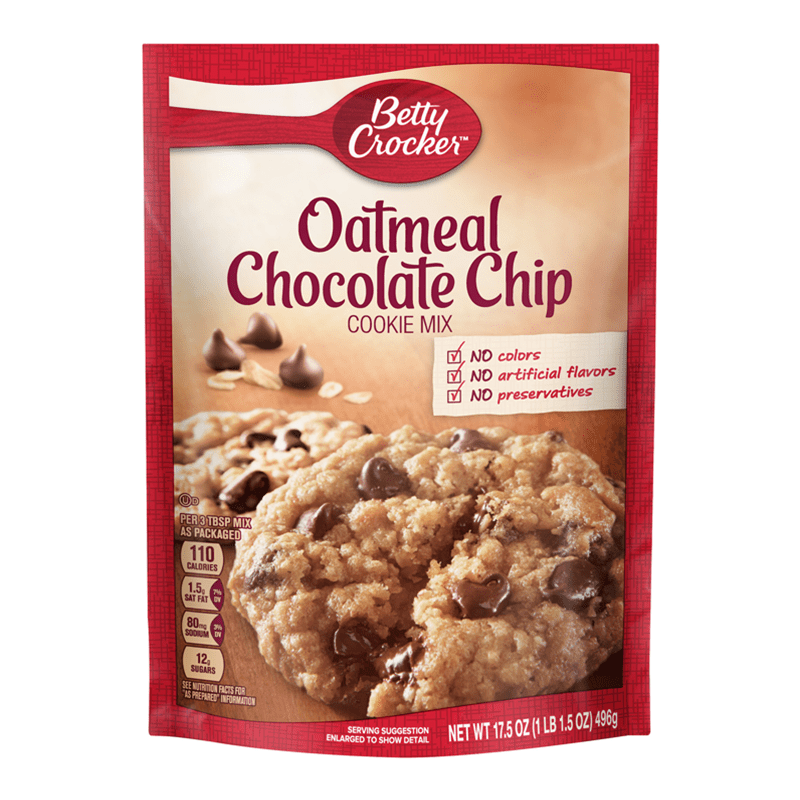 Fill your kitchen with the scent of home-baked cookies in minutes! With Betty Crocker Oatmeal Chocolate Chip Cookie Mix, you can treat yourself to oven-fresh chocolate chip cookies any time of the day or night. Prepare cookie mix as is or explore Betty Crocker recipes for a new take on this cookie classic.For more than a century, Betty Crocker has been a popular creator of easy, delicious recipes. Today, the Betty Crocker kitchen is still providing convenient, tasty dessert mixes, frostings, and convenient meal options and side dishes. And today, you can still find that same simple goodness — those same products you grew up with — on grocery shelves around the world.
