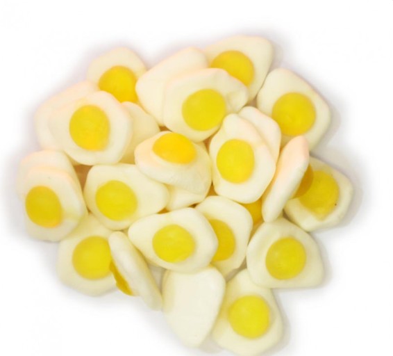Don’t worry, not egg flavour (yuck!), but a milky, fruity sort of flavour. A Haribo classic in the shape of a fried egg – soft and white on the outside with a gummy yellow centre.