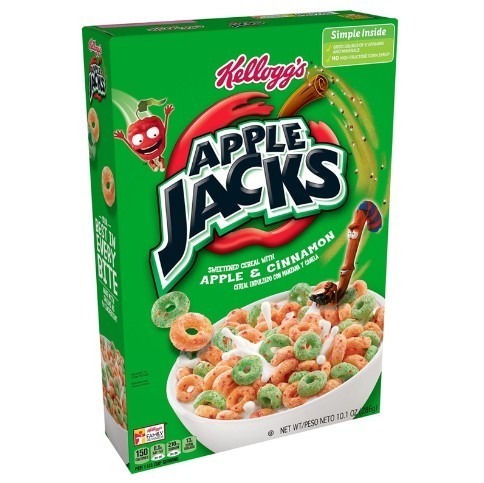 Start your day with Kellogg’s Apple Jacks breakfast cereal and the sweet delicious taste of apples and cinnamon. A low-fat breakfast cereal, Kellogg’s Apple Jacks is a good source of eight vitamins and minerals. Not just for breakfast, Kellogg’s Apple Jacks is a tasty and nutritious addition to any meal or snack any time of the day. Enjoy as a snack at the office, an afternoon pick-me-up, a post-workout treat, and or a late-night bowlful of sweet, crunchy cereal. Kellogg’s Apple Jacks also makes a delicious addition to your favorite yogurt and is a great base for homemade trail mix; the mouthwatering options are endless. Pack this cereal in a small bag for lunchboxes, enjoy as after-school snacks, bring along to sporting events, or indulge in during busy, on-the-go moments. Just add your favorite dairy or nut milk or enjoy as a crispy treat straight from the bag.