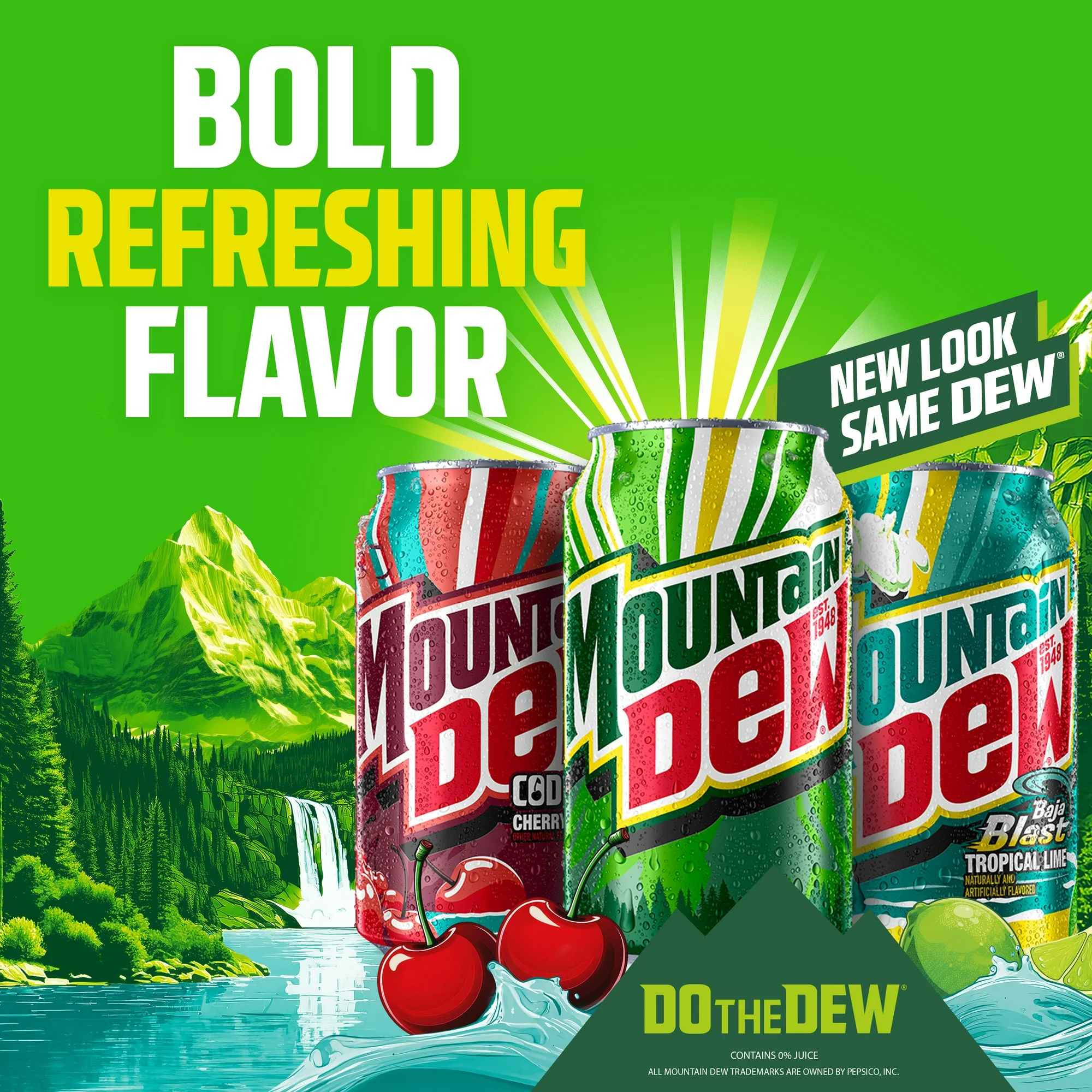 - Mountain Dew, the original instigator, refreshes with its great taste