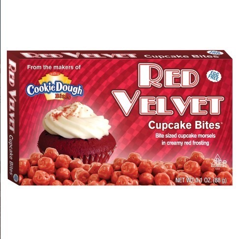 Confectionery coating (sugar, partially hydrogenated palm kernel oil, nonfat milk powder, whole milk powder, cocoa powder, FD&C red 40 lake, natural flavor, soy lecithin (an emulsifier) and vanillin (an artificial flavoring)) and cupcake bites (wheata flour, sugar, partially hydrogenated vegetable oil (palm kernel, palm, soybean, and cottonseed), corn syrup, fructose, water, palm oil, natural and artificial flavors, soy lecithin, salt and xanthan gum.